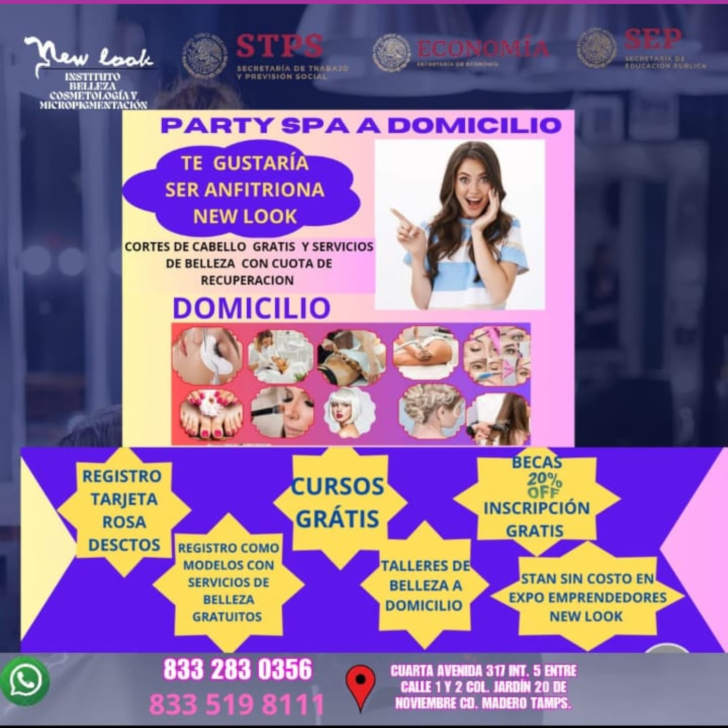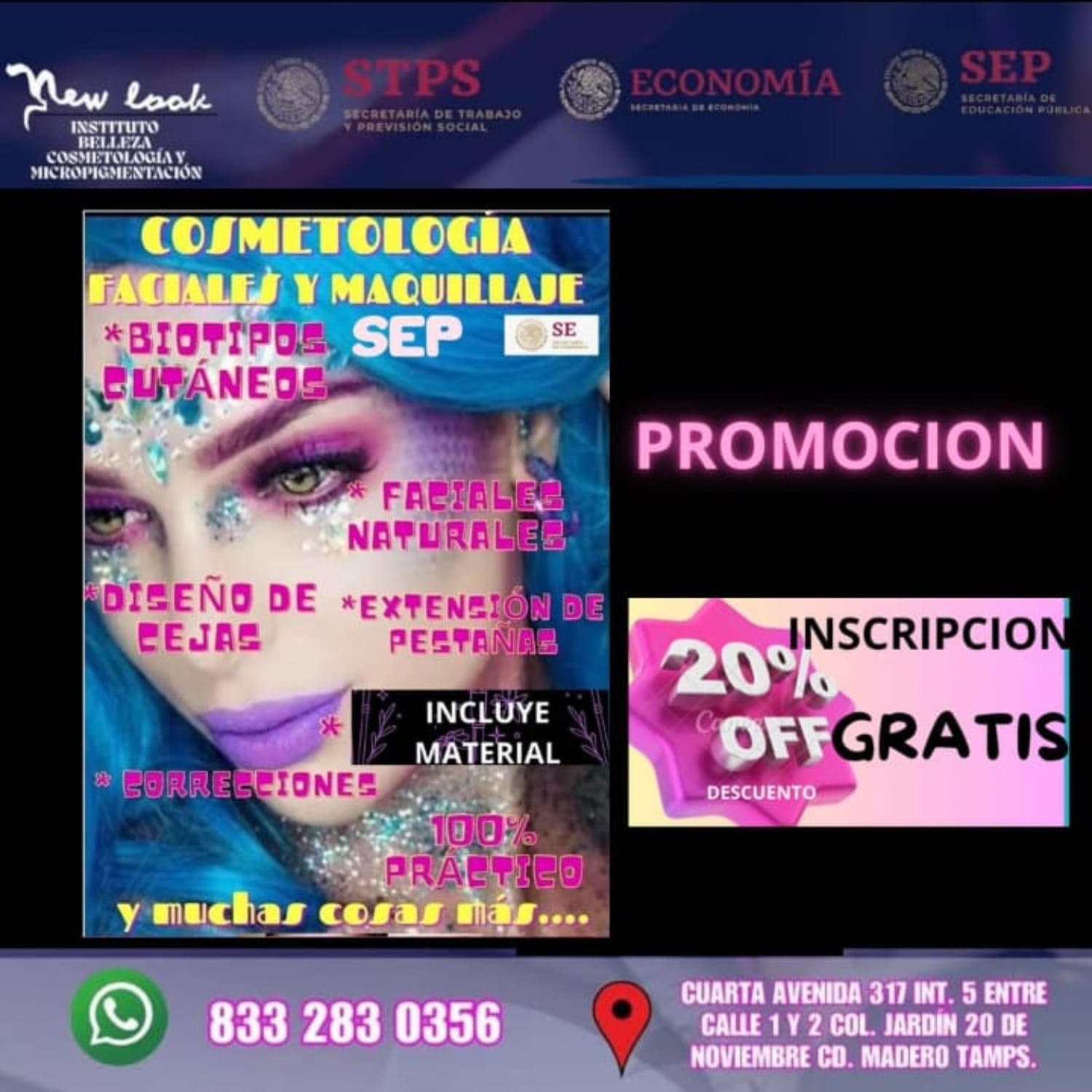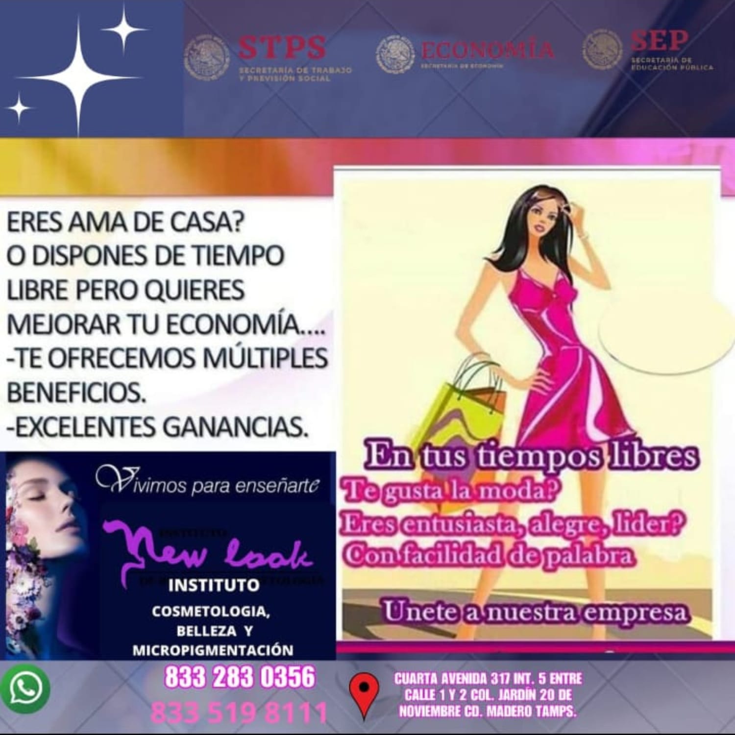 Nuestro compromiso como INSTITUTO de BELLEZA NEW LOOK es capacitar a personas capaces de sobresalir en el ambito de la BELLEZA y SALUD y se les incluye el PROGRAMA "ESTUDIA, PRACTICA Y GANA DINERO AL MISMO TIEMPO" asi cómo PLATAFORMA de PUBLICIDAD "EXPO EMPRENDEDORES NEW LOOK" a fin de apoyar a nuestro ALUMNADO a generar un ingreso al momento de estudiar y al término del curso contratado impulsamos su negocio con PUBLICIDAD a fin de acreditarse y crear su CARTERA de CLIENTES.😍